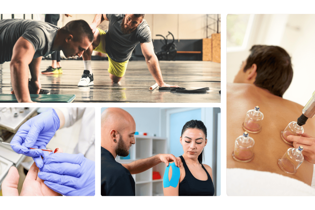 The program offers a comprehensive range of therapeutic modalities to address various physical concerns. It includes infrared lamp therapy for deep heat penetration and pain relief, TENS (Transcutaneous Electrical Nerve Stimulation) for managing chronic pain, ultrasound therapy for promoting tissue healing and reducing inflammation, a percussion massage gun for releasing muscle tension and improving circulation, a G5 massage therapy machine for stimulating lymphatic drainage and enhancing detoxification, acupressure massage and cupping for alleviating muscle tightness and promoting relaxation, and kinesiology tape for supporting muscles and joints during physical activities or rehabilitation.