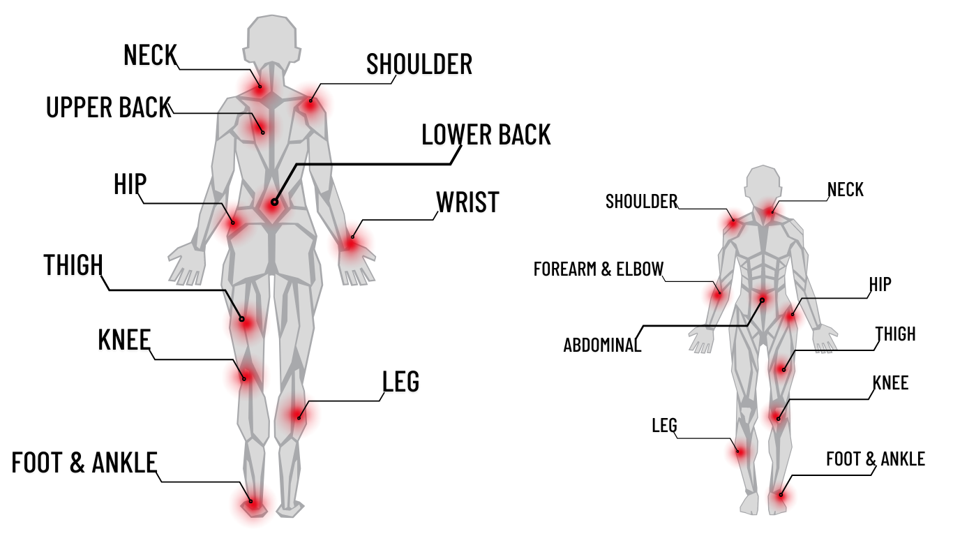 The muscle anatomy chart illustrates common areas of pain and injuries that can arise in muscles and joints compromised by a sedentary lifestyle, sports-related injuries, or excessive exercise. If you're struggling with unresolved chronic pain, YES Integrative Wellness program may offer you solace. Book a consultation with our team today to discover personalized solutions for your pain management journey.